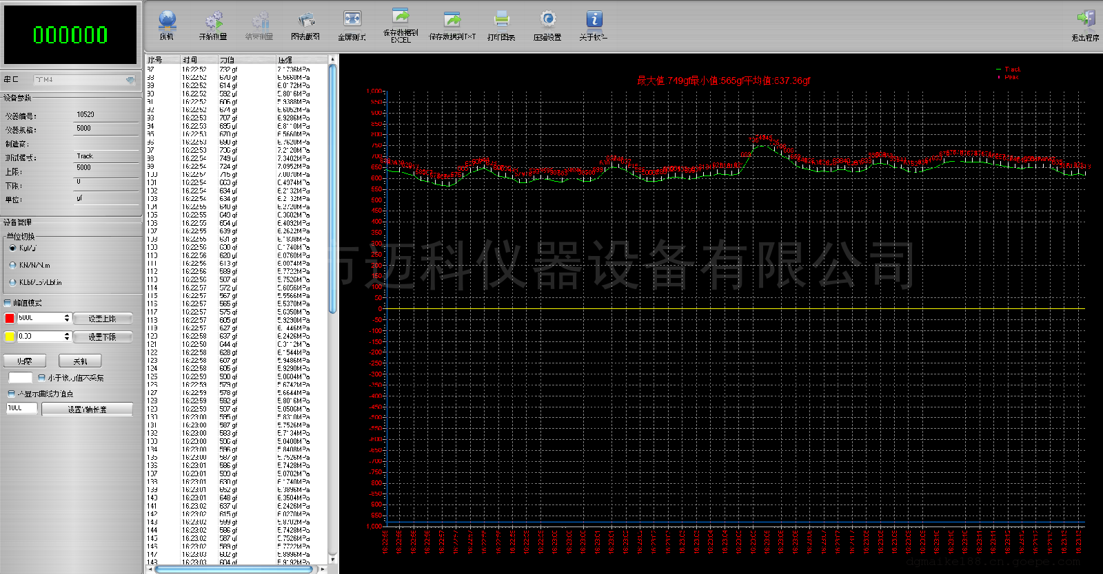4、通讯功能:数显力值表可与电脑连接,显示力与时间曲线图,自动计算max剥离力、min剥离力、平均剥离力