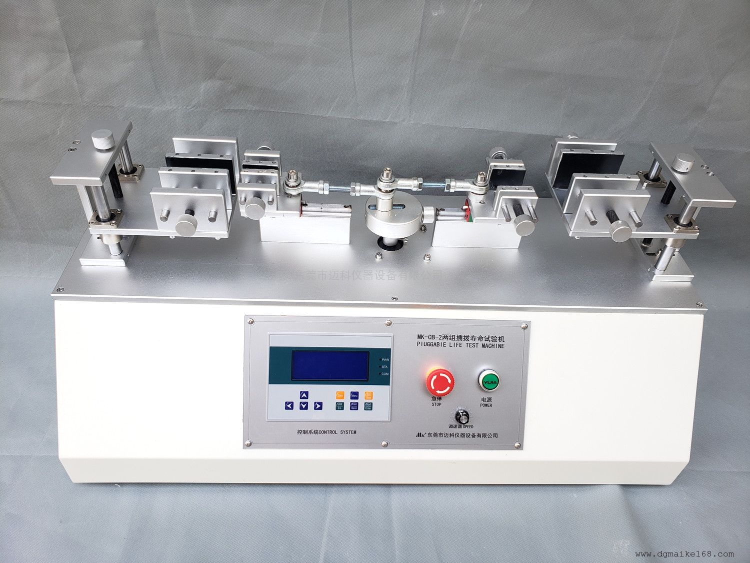 两组插拔寿命试验机用于手机、USB连接器、排针排母、圆孔插头插座、音频插头插座、RJ45、连接器等产品插拔寿命测试。微电脑插拔寿命试验机试验速度可调、试验次数可预置、试验行程可调等。