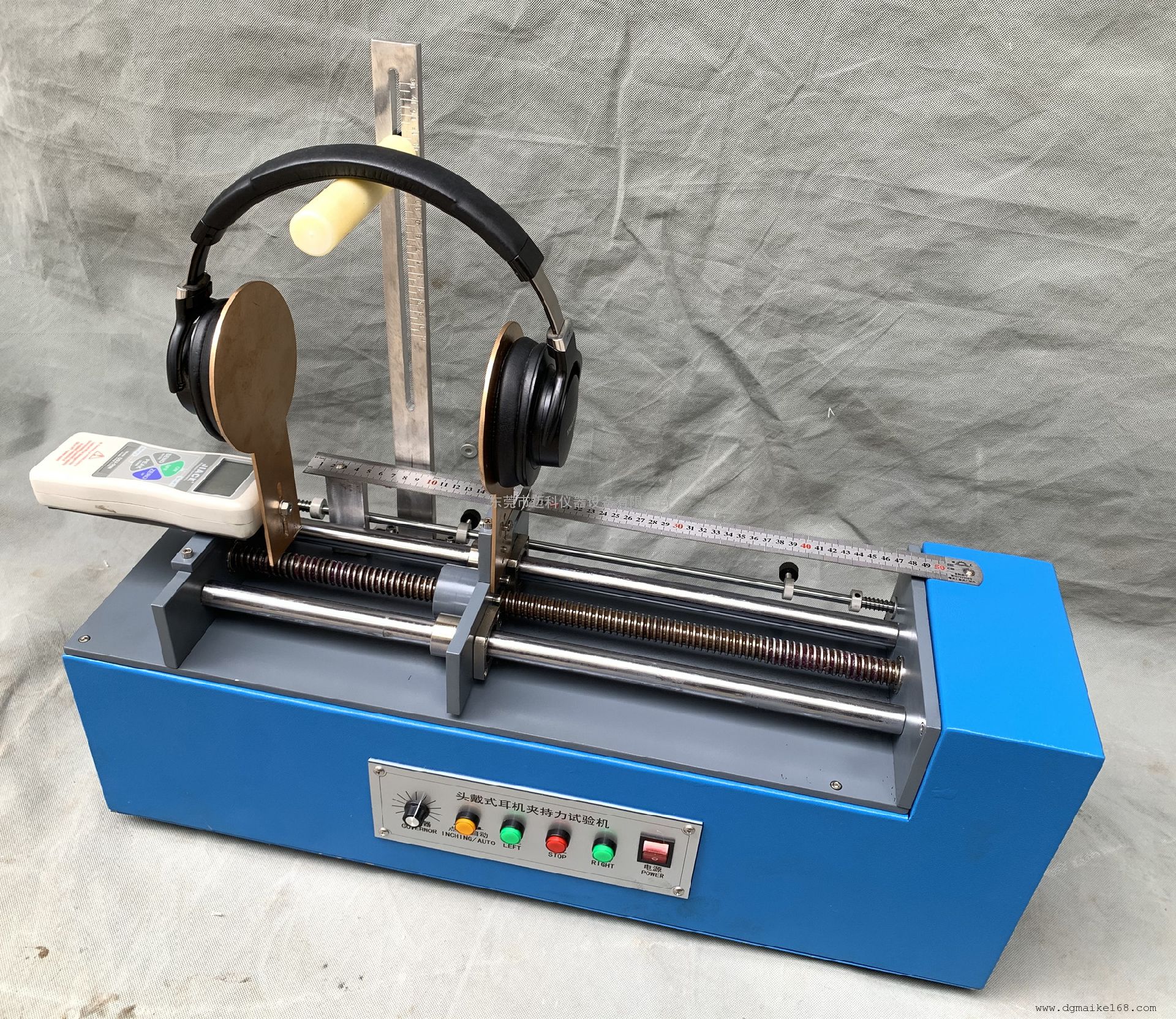 电动头戴耳机扩张力试验机用于头戴耳机及头戴耳机钢条产品夹持力测试。电动头戴耳机夹持力试验机是电动调节扩张行程,通过数显拉力计上显示夹持力值。电动头戴耳机张力试验机符合《头戴耳机通用技术标准GB/T14471、GB6832》等标准要求。