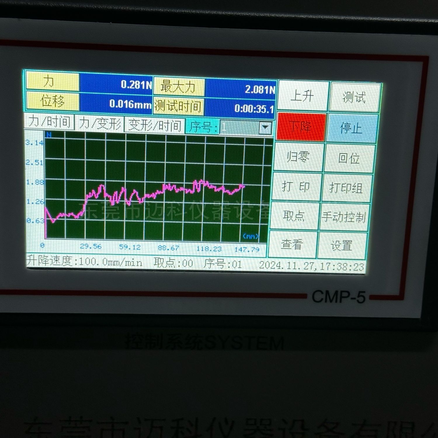 4、力量-时间、力量-变形、变形-时间等曲线,曲线坐标可自由改动;