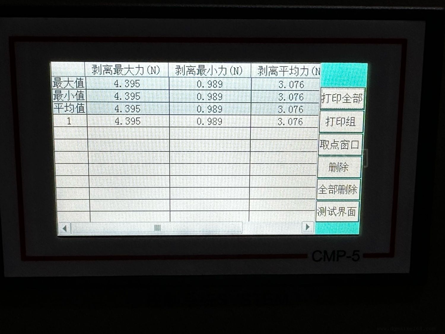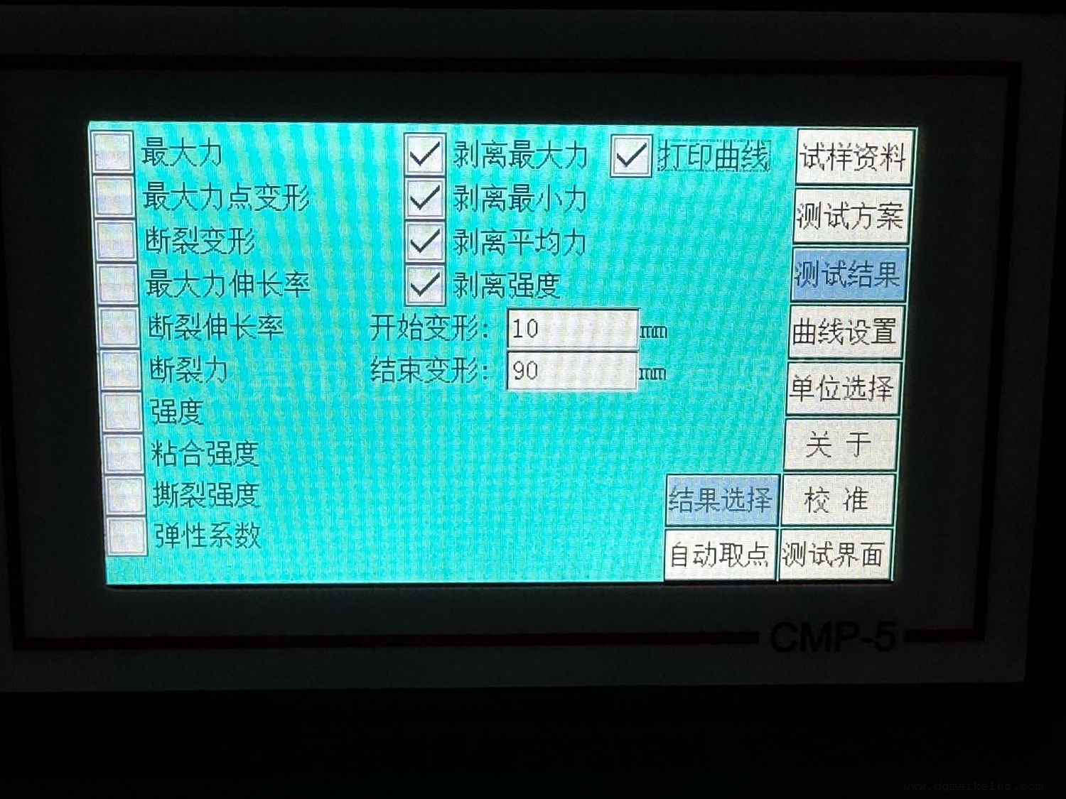 11、测试结果:剥离区间*大(max)力、剥离区间*小(min)力、剥离区间平均力、剥离强度、测试曲线,剥离区间可设置